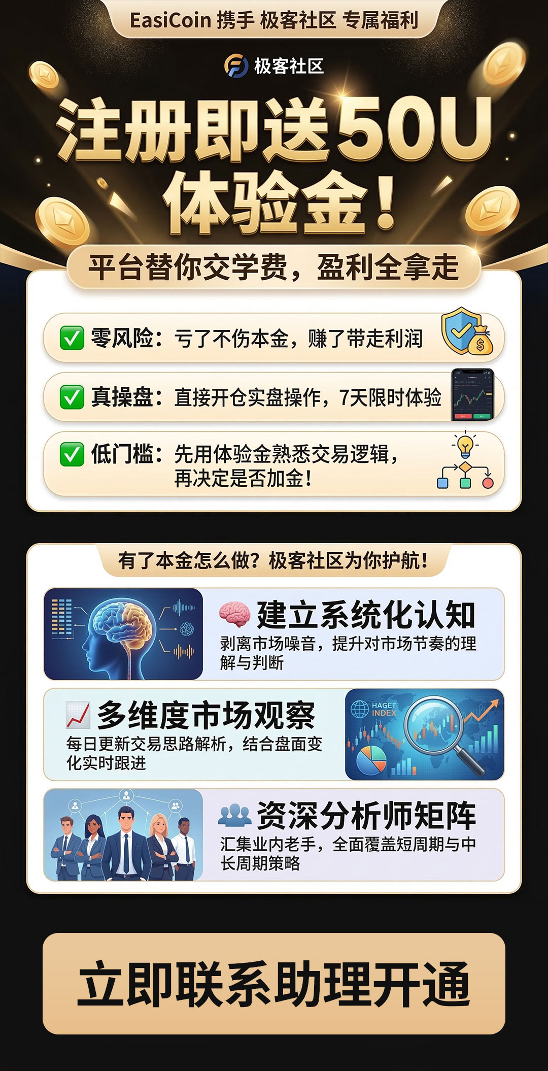 EasiCoin 携手 极客社区 专属福利 注册即送50U体验金!